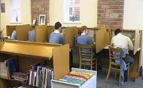 In ACE private schools, K-12 students work through PACEs by themselves at desks that look like this: